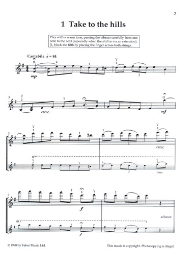 14 advanced studies for solo violin. Using baroque, romantic, contemporary and folk styles, these studies are also ideal as unaccompanied concert repertoire. Practise and performance tips guide the student and outline the technical and musical goals. Techniques covered include: advanced position changing, fast passage work and string crossings, natural and artificial harmonics, slow bowing and playing many notes in one bow, working in unusual or changing time signatures, free improvisation within strict boundaries, double stopping, and rapid changes between arco and pizzicato. Follows on directly from Technique Takes Off!. Approximately Grade 6-8 standard.