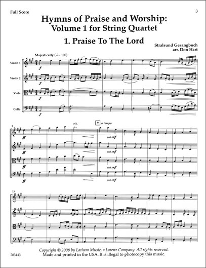 Hyms of Praise and Worship: Volume 1 for String Quartet published by Latham Music.