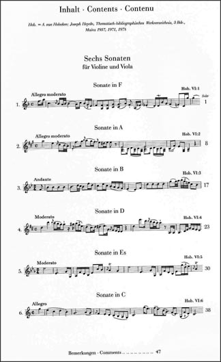 Haydn - Six Sonatas for Violin and Viola, Hob. VI:1-6 (HEN) published by Henle.