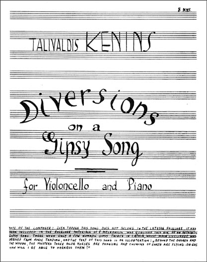 Kenins - Diversions on Gipsy Song for Cello and Piano published by Canadian Music Centre.
