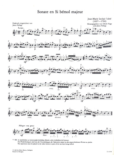 Leclair - Six Sonatas for Violin and Piano, Vol. 2 (EMB) published by Edition Musica Budapest.