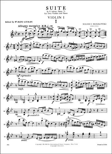 Moszkowski - Suite in G minor, Op. 71 for 2 Violins (INT) published by International Music Company.