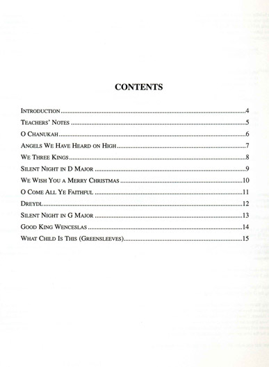 More Festive Strings is a collection of well-known Christmas and Chanukah melodies arranged to meet the needs of individuals, groups and orchestras. In order to provide flexibility, the collection is available in a number of instrumentations, all of which are compatible with each other. Accessible keys have been used and shifting is kept to a minimum. Titles are: O Chanukah * Angels We Have Heard on High * We Three Kings * Silent Night in D Major * We Wish You a Merry Christmas * O Come All Ye Faithful * Dreydl * Silent Night in G Major * Good King Wenceslas * What Child Is This (Greensleeves).