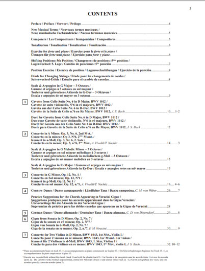 Titles: Gavotte (Bach) * Concerto in A Minor, 2nd Movement, Op. 3 No. 6 (Vivaldi/Nachéz) * Concerto in G Minor (Vivaldi/Nachéz) * Country Dance (Weber) * German Dance (Dittersdorf) * Gigue (Veracini) * Concerto for Two Violins in D Minor, BWV 1043, Violins I and II (Bach) * Concerto for Two Violins in D Minor, BWV 1043, Violins I (Bach) * Concerto for Two Violins in D Minor, BWV 1043, Violins II (Bach).