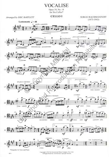 Rachmaninoff - Vocalise Op. 34, No. 14 for Six Cellos (INT) published by International Music Company.