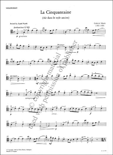 La Cinquantaine pour Violoncelle et Piano published by Edition Musica Budapest.