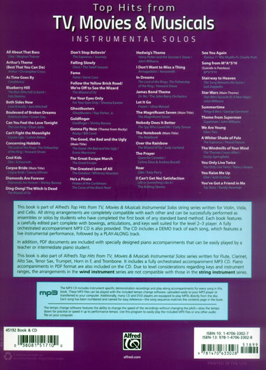 Each book contains carefully edited arrangements appropriate to each instrument, and is well suited for level 2-3 students. The CD includes a fully orchestrated demo track of each song, which features a live instrumental solo performance, followed by a play-along track. Also included are PDFs of piano accompaniments, and Alfred's Tempo Changer Software.