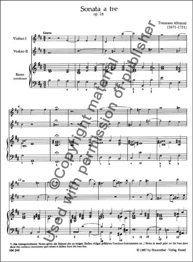 • Albinoni - Trio Sonata in B minor, Op. 1/8 (BAR) published by Bärenreiter.