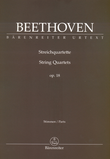 The internationally renowned Beethoven scholar has turned his attention to a set of chamber musical crown jewels; Beethoven's important opus 18 string quartets. The new Bärenreiter publication is not based on a reprint of the first edition parts, but makes use of a manuscript set of parts with some corrections in Beethoven's hand which turned up in the 1980s.