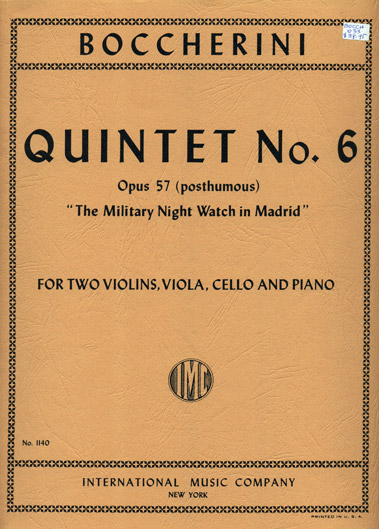 Boccherini - Piano Quintet No. 6, Op. 57 post. (INT) published by International Music Company.
