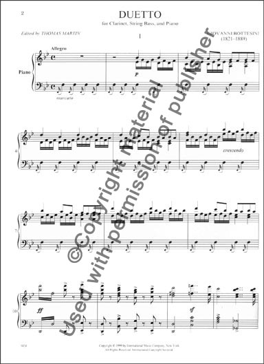Bottesini - Duetto for Clarinet, Bass and Piano (INT) published by International Music Company.