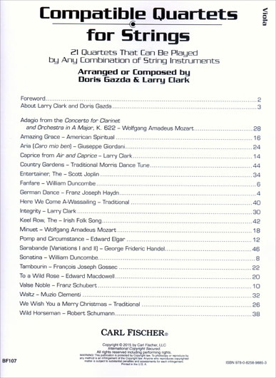 Compatible Quartets for Strings, Viola published by Carl Fischer.