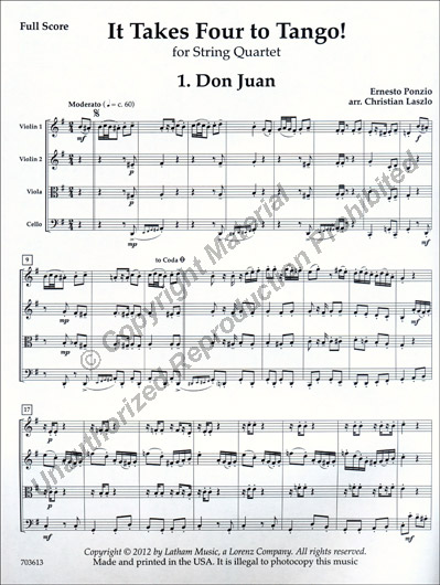 It Takes Four to Tango! for String Quartet published by Latham Music.