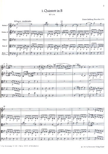Mozart - The Complete String Quintets - Study Score (BAR) published by Bärenreiter.
