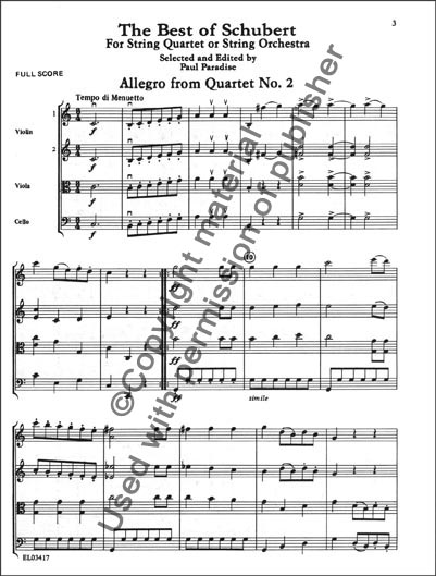 Contents are: Adagio (from Quartet No. 10) * Allegretto (from Quartet No. 7) * Allegretto (from Quartet No. 13) * Allegro (from Quartet No. 2) * Allegro (from Quartet No. 6) * Allegro (from Quartet No. 8) * Andante (from Quartet No. 1) * Andante (from Quartet No. 4) * Andante (from Quartet No. 6) * Andante (from Quartet No. 13) * Menuetto (from Quartet No. 1) * Menuetto (from Quartet No. 3) * Menuetto (from Quartet No. 4) * Menuetto (from Quartet No. 9) * Presto (from Quartet No. 7) * Scherzo (from Quartet No. 15).