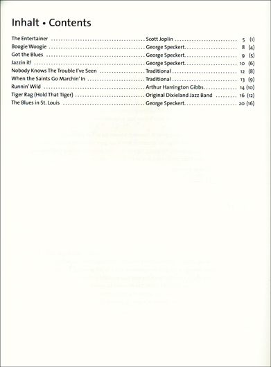 "The Entertainer" (Scott Joplin), "Nobody Knows the Trouble I've Seen" (trad.), "When the Saints Go Marching In" (trad.), "St. Louis Blues" (W. C. Handy), "Tiger Rag" (Hold that Tiger) (Nick la Rocca), "New Orleans" (Newton Alexander) and original compositions by George Speckert
