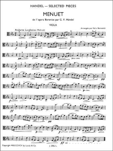 Handel - Selected Pieces for Violin or Viola and Piano (BOSW) published by Bosworth & Co..