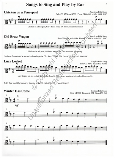 Learning Together repertoire can be used to establish solo technique, introduce ensemble skills, develop aural skills, and can serve as a foundation for learning to read music. Performance possibilities include individual solo or unison groups, class ensembles, and district or festival sized orchestras.
