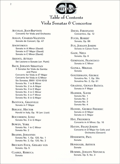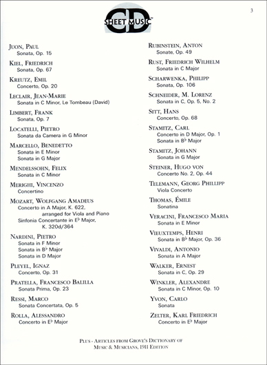 Scores and parts for 81 viola sonatas and concertos, over 2,300 pages of music by 58 different composers. Also included are articles on the composers represented in this collection and related entries from the 1911 edition of the