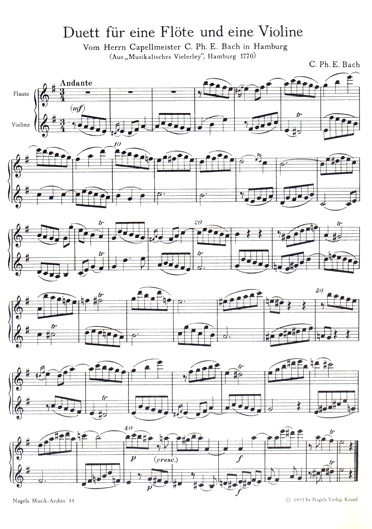 Bach C.P.E. - Two Duets for Flute and Violin (BAR) published by Nagels Verlag Kassel.