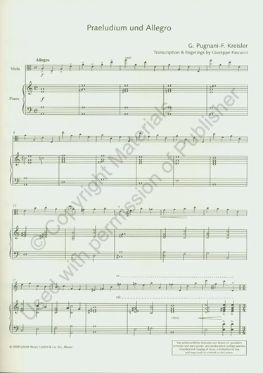Kreisler - Praeludium und Allegro for Viola (SCHOTT) published by Schott.