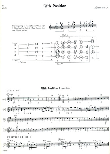 Shifting Positions - Individual Instrument Exercises - I to V Position, same finger I, III and V Positions, High and Low