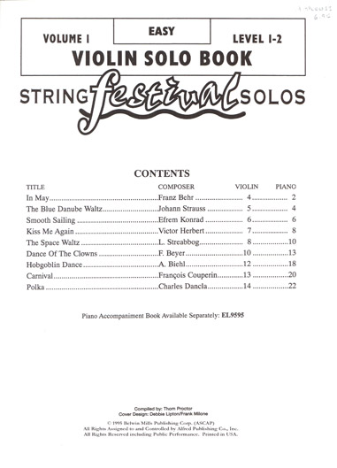 String Festival Solos - Violin, Volume 1, Level 1-2 published by Belwin Mills Publishing.