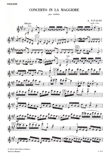 Vivaldi - Violin Concerto in A Major, Op. 9 No. 2, RV 345 (EMB) published by Edition Musica Budapest.
