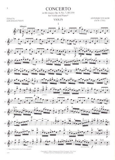 Vivaldi - Violin Concerto in B flat, Op. 9 No. 17, RV 359 (INT) published by International Music Company.
