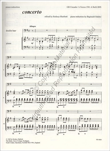 Cimador - Concerto in G Major for Bass and Piano (YORKE) publicado por Yorke Edition.