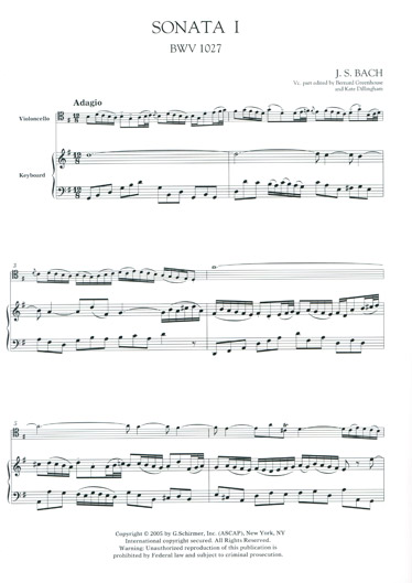 Bach - Sonatas BWV 1027, 1028, 1029 for Cello and Piano (SCHIR) publicado por Schirmer.