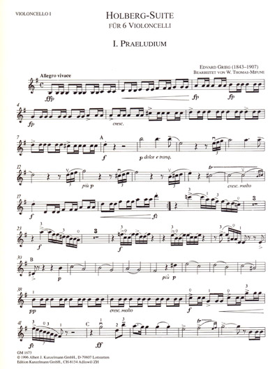 Grieg - Holberg Suite for 6 Cellos (KUNZ) publicado por Edition Kunzelmann.