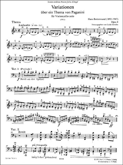 Paganin i- Variationen Opus 4 Violoncello Solo publicado por Edition Peters.