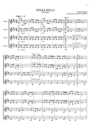Festive Strings is a collection of well-known Christmas and Chanukah melodies arranged to meet the needs of individuals, groups and orchestras. In order to provide flexibility, the collection is available in a number of instrumentations, all of which are compatible with each other. Accessible keys have been used and shifting is kept to a minimum. Titles are: Jingle Bells in D Major * Joy to the World * Chanukah * Away in a Manger * Jolly Old Saint Nicholas * God Rest Ye Merry, Gentlemen * S'Vivon * Jingle Bells in A Major * Lo, How a Rose * O Christmas Tree.
