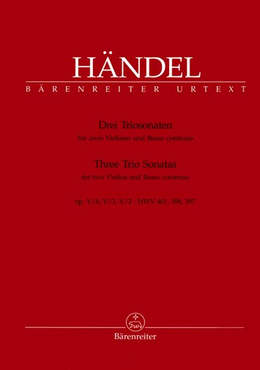 Handel - Three Trio Sonatas for 2 Violins & Basso Continuo (BAR) publicado por Bärenreiter.