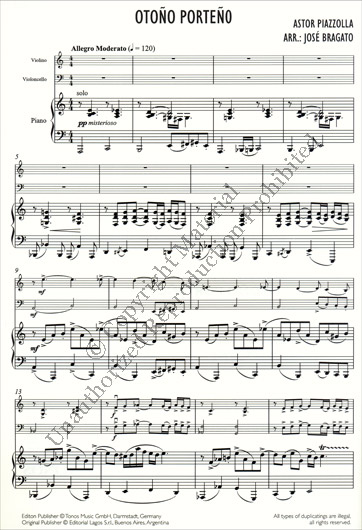 • Piazzolla - Otoño Porteño (Autumn) for Piano Trio publicado por Tonos.