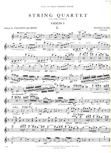 Ravel - String Quartet in F Major (INT) publicado por International Music Company.