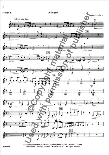 Contents are: Opus 18, No. 1 (Allegro) * Opus 18, No. 2 (Allegro) * Opus 18, No. 3 (Andante) * Opus 18, No. 4 (Menuetto) * Opus 18, No. 4 (Scherzo) * Opus 18, No. 5 (Allegro) * Opus 18, No. 5 (Menuetto) * Opus 18, No. 6 (Allegro) * Opus 74 (Allegretto)