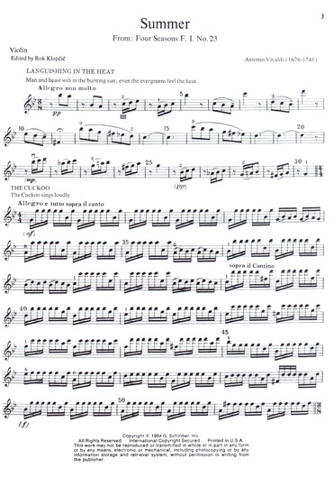Vivaldi - Violin Concerto Op. 8 No. 2 "Summer" RV 315 (SCHIR) publicado por Schirmer.