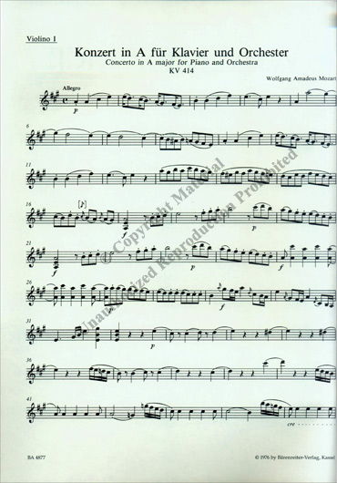 Mozart - Piano Concerto No. 12 in A major K. 414 (BAR) publié par Bärenreiter.