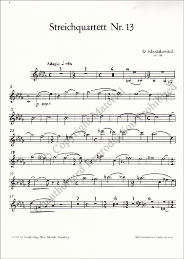 Shostakovich - String Quartet No. 13 in B-flat minor, Op. 138 publié par Sikorski.