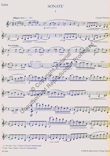 The first edition, published during the final year of Debussy’s life, contains many rhythmic errors. The non-autograph metronome marks as well as the discrepancies between the separate violin part and the violin part in small print in the piano score are two problems that have affected the work’s later reception. Both are examined here in a fresh light.