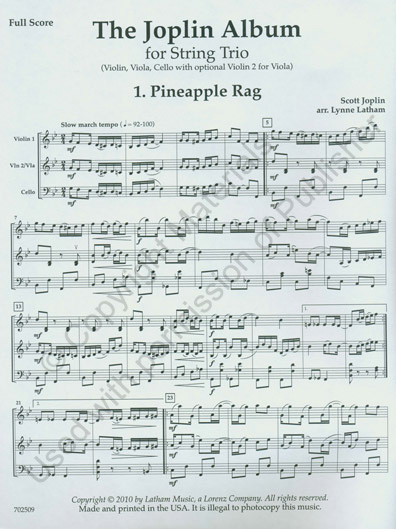 The Joplin Album for String Trio - Score arranged by Lynne Latham.