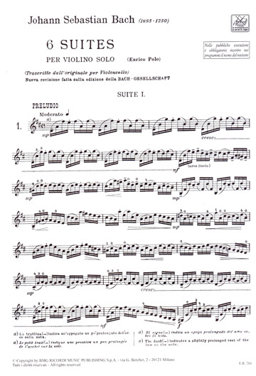 Bach - Suites for Solo Violin BWV 1007-1012 (RIC) publié par Ricordi.