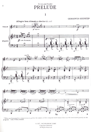 Gershwin-Heifetz - Preludes for Violin and Piano publié par Masters Music Publications.