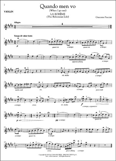 Play Puccini for Violin and Piano (CD included) publié par Ricordi.