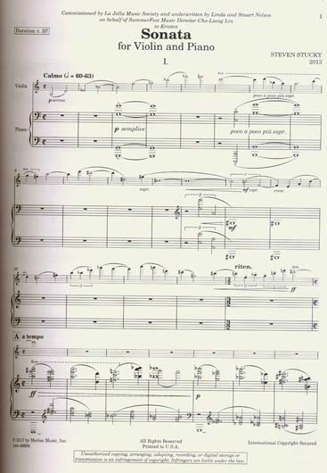Steven Stucky - Sonata For Violin And Piano publié par Theodore Presser Company.